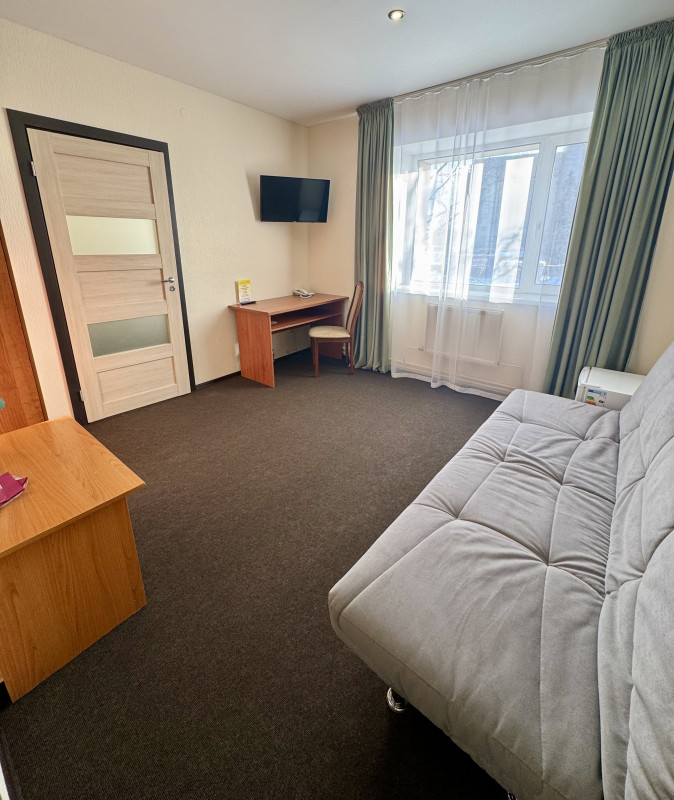 Завтраки. Кровать ( 1,4м)/ Две отдельные кровати (1,1м). Диван. Два ТВ. Санузел (душ/ туалет). Бесплатный Wi-Fi.